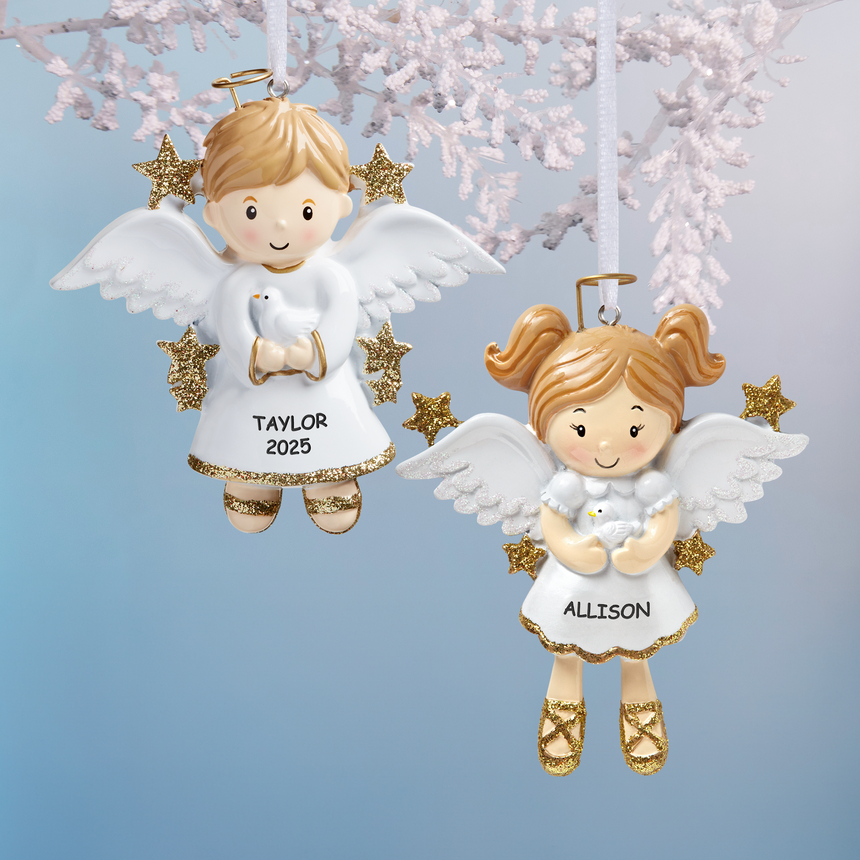 Best Personalized Angel Boy With Dove Ornament Angels & Religious