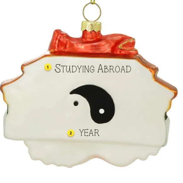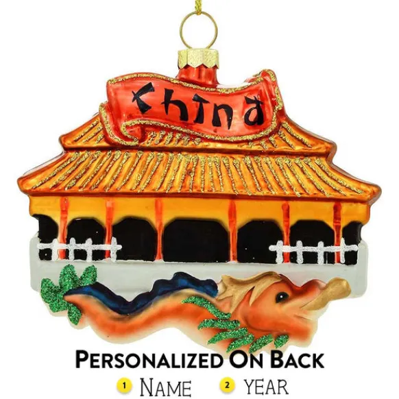 A Dragon Symbolizing Power, Strength, And Good Luck Presides Over An Ancient Pagoda In This Artful Tribute To Chinese Culture. Featuring A Red Banner With The Word China, This Vibrant 3½” Tall X 4½” Tall Ornament Is Skillfully Crafted Of Glass With A Myriad Of Vivid Glazes And Dazzling Glitter Accents. A Ying Yang Symbol In Vivid Black And White Is Depicted On The Reverse Side Of Ornament. Coming Ready To Hang With A Gold Cord, This Exquisitely Detailed Ornament Makes A Charming Memento For Those Who Have Visited, Or Plan To Visit, The East Asian Country Of China!