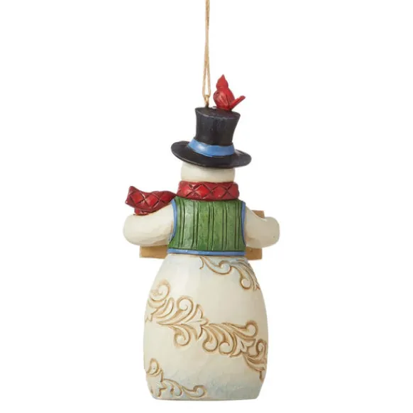 Holding A Wooden Sign Reading Merry Christmas, This Adorable Snowman Hanging Ornament Smiles From Your Tree With A Cardinal On His Hat. With Holly And Rosemaling, This Festive Snow Friend Brings Warmth To Any Cold Day.