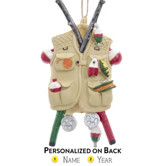 The Fisherman On Your List Will Love This Decked Out Fishing Vest Ornament Complete With Lures, Bobbins, Rods And Reels.. Have It Personalized To Make It Even More Special.