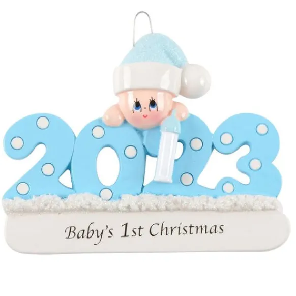 Cheap Personalized 2023 Dated Baby Boy's 1St Christmas Ornament Baby