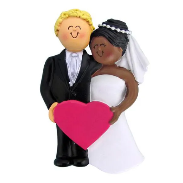 Celebrate Your Wedding Day With This Adorable Bride And Groom Ornament. Perfect For An Interracial Couple Featuring A Black Woman Bride And White Groom. This Ornament Will Be A Treasured Keepsake For Years To Come.
