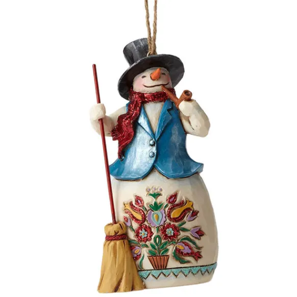 Dressed To The Nines In Top Hat, Glittering Scarf, And Iridescent Vest, This Jim Shore Heartwood Creek Snowman Will Be The Eye-Catching Piece Of Any Display. He Holds A Broom In One Hand And An Old Pipe Up To His Mouth In The Other.