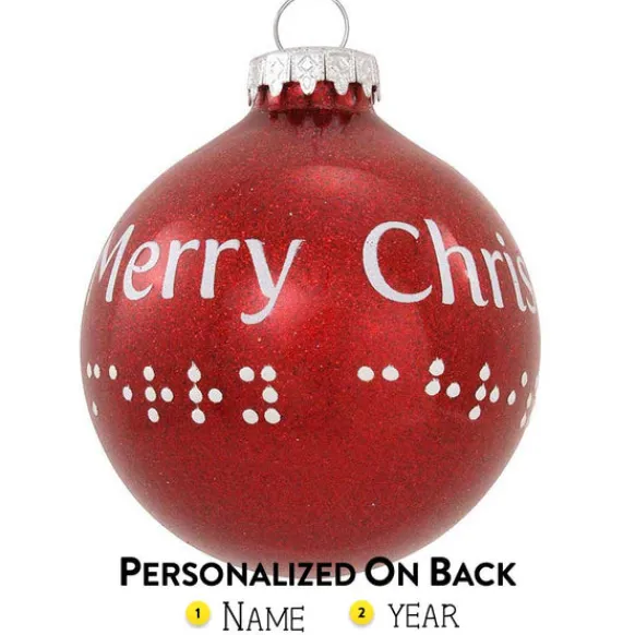 With Raised Dots Spelling Out The Greeting “Merry Christmas” This Unique Braille Ornament Is A Great Way To Send Special Holiday Greetings To The Blind Or Sight-Impaired Members Amongst Your Family And Friends. The Sentiment Merry Christmas Appears In Large White Print Over The Embossed Braille Greeting.