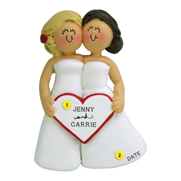 Celebrate Your Wedding Day With This Adorable Lesbian Wedding Ornament. This Ornament Will Be A Treasured Keepsake For Years To Come For Your Favorite Same-Sex Newlywed Couple. You Might Also Like Our I Do Rainbow Hearts Ornament For Your Gay Or Lesbian Wedding Couple.