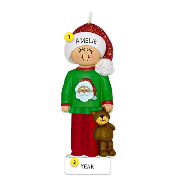 This Darling Decoration Features A Sweet Little Girl In Christmas Pajamas, Cuddled Up With A Teddy Bear. Add Personalized Details Like Your Kiddo’s Name And The Year For A Truly Special Touch! Perfect For The Holiday Season!