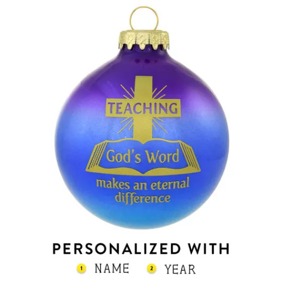 Show Your Appreciation For A Sunday School Teacher, Bible Study Leader, Priest, Pastor Or Other Religious Leader With The Thoughtful Words Teaching God’s Word Makes An Eternal Difference Embossed In Gold On This Beautiful Ornament. Personalized This Piece To Make An Extra Special Gift For Someone Helping You Along Your Faith Journey.