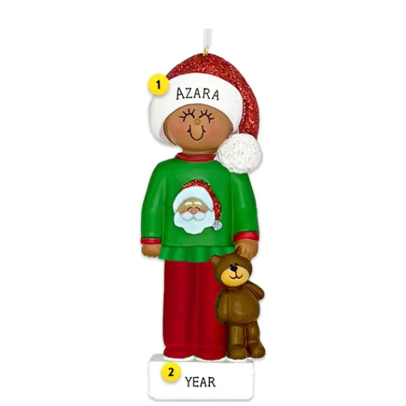 This Darling Ornament Will Charm Your Holiday Season! Featuring A Cozy Cutie In Christmas Pajamas, Snuggling Up With A Teddy Bear. It Can Be Personalized With Your Little One’s Name And Year–The Perfect Touch!