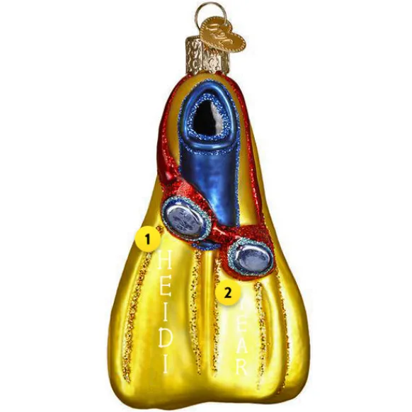 Swim Flippers, Also Known As Swim Fins, Are Used In A Variety Of Water Sports Such As Snorkeling And Underwater Diving. Flippers Help The Swimmer Move Through The Water More Efficiently, Adding Thrust To Each Kick. Early Inventors Such As Leonardo De Vinci And Benjamin Franklin Had A Hand In Inventing The Original Swim Flippers, And This Swim Flippers Ornament Pays Tribute To Their Ingenuity.
