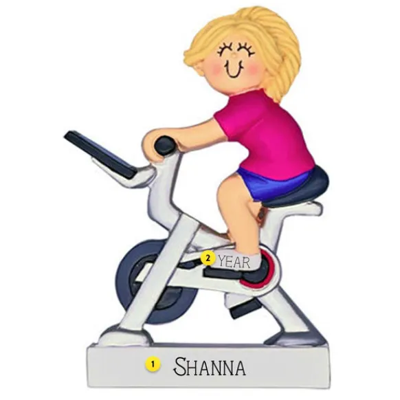 Online Ornament Central Personalized Exercise Bike Ornament – Female, Blonde Hair
