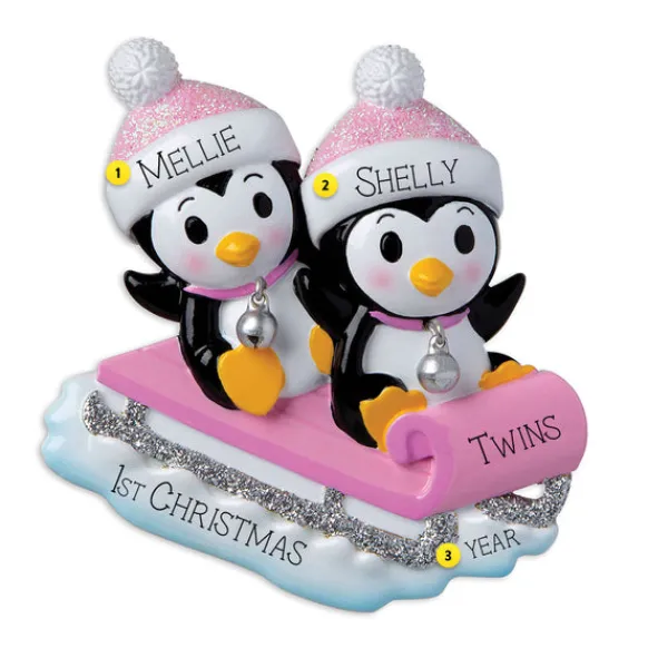 Adorable And Unique Pink Twins’ 1St Christmas Dated And Personalized Ornament. This Cute Twins Ornament Is The Best Gift To Celebrate Your Two Bundles Of Joy! Perfect For Mixed Race Children.