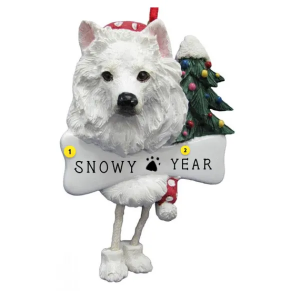 Dogs Are Important Members Of Our Family. Return Their Unconditional Love And Honor Them By Hanging This Cute Dangling-Leg American Eskimo Dog Ornament On The Family Tree.