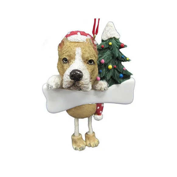 Dogs Are Important Members Of Our Family. Return Their Unconditional Love And Honor Them By Hanging This Cute Dangling-Leg Brindle Pit Bull Ornament On The Family Tree.