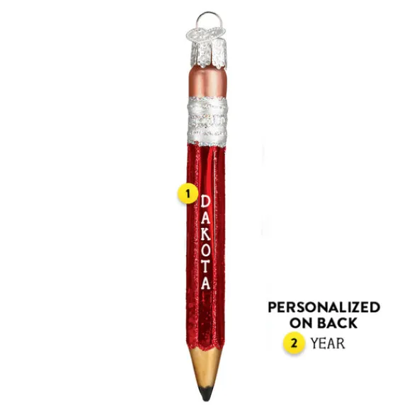 This Red Glass Pencil Ornament Makes A Great Gift For A Teacher, Student Or For That Person Who Always Has A Pencil Behind Their Ear!