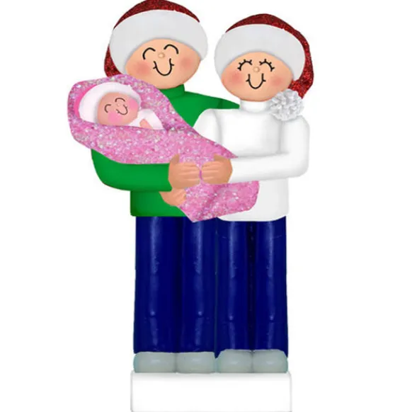 This Personalized New Parents With A Baby Girl Ornament Is A Great Keepsake To Welcome The Newest Member Of The Family. Have It Personalized To Make It Special.