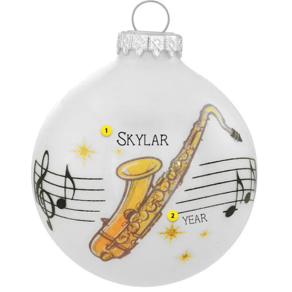 Add A Merry Melody To Your Music Lover’s Tree With This Note-Worthy Design! This Ornament Features A Saxophone And Flowing Music Staff Surrounded By Glittering Gold Stars.