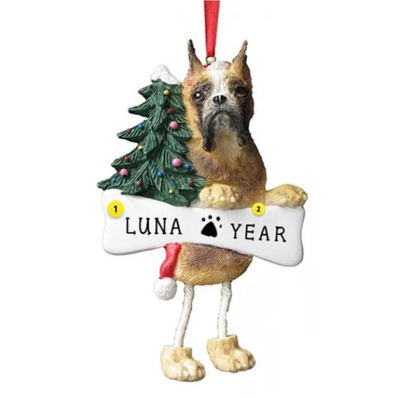 Dogs Are Important Members Of Our Families. Return Their Unconditional Love And Honor Them By Hanging This Cute Dangling-Leg Cropped Boxer Ornament On The Family Tree.
