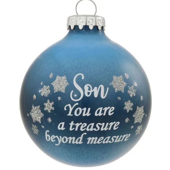 “Son You Are A Treasure Beyond Measure” Adorns This Handsome 2-Tone Sky Blue Ornament Along With A Galaxy Of Shimmering Silver Stars. This Heart-Touching Keepsake Is A Gift Your Son Is Sure To Treasure For Many Christmases To Come!