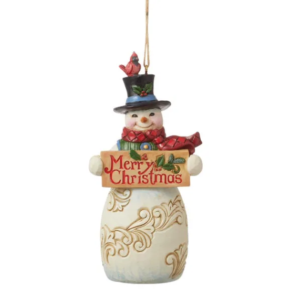 Holding A Wooden Sign Reading Merry Christmas, This Adorable Snowman Hanging Ornament Smiles From Your Tree With A Cardinal On His Hat. With Holly And Rosemaling, This Festive Snow Friend Brings Warmth To Any Cold Day.