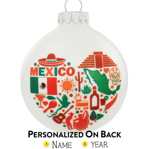 Does Mexico Have Your Heart? Then You’Re Sure To Love Our Mexican Icons Ornament! This White Opal Ornament Celebrates The Distinctive Customs And Traditions Of Mexico’s Rich Heritage In A Lovely Heart Pattern. Symbols Include A Sombrero, The Word “Mexico”, The Mexican Flag, A Margarita, Heart And Jalapeno Pepper. A Maraca, Guitar, And Dancers. A Pinata, Quetzal Bird, Sun, Cactus, And Succulent. An Avocado, Hot Sauce, Chili Pepper, Day Of The Dead Skull, Aztec Architecture And A Silhouette Of Mexico.