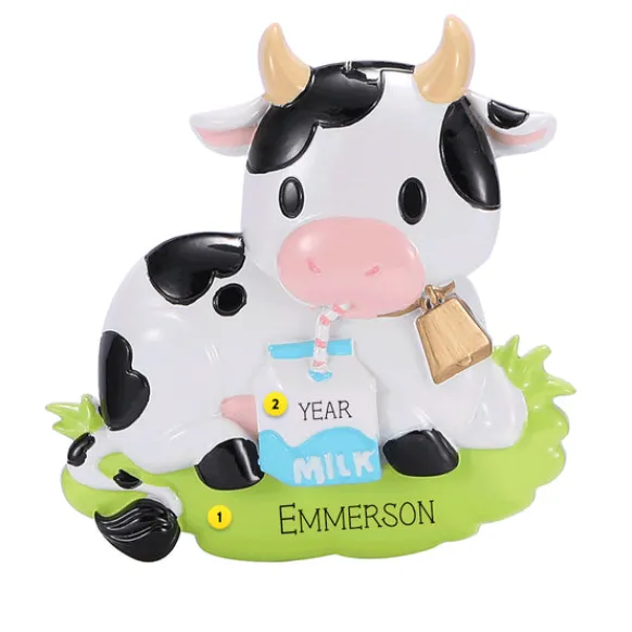 This Adorable Personalized Dairy Cow Ornament Is The Perfect Gift For The Kid Or Kid At Heart Who Loves Farm Animals. This Adorable Cartoon Cow Is Featured Drinking Milk.
