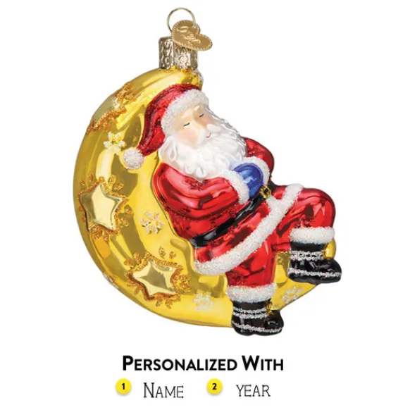 This Glass, Ornament By Old World Christmas Features Santa Resting On A Crescent Moon.