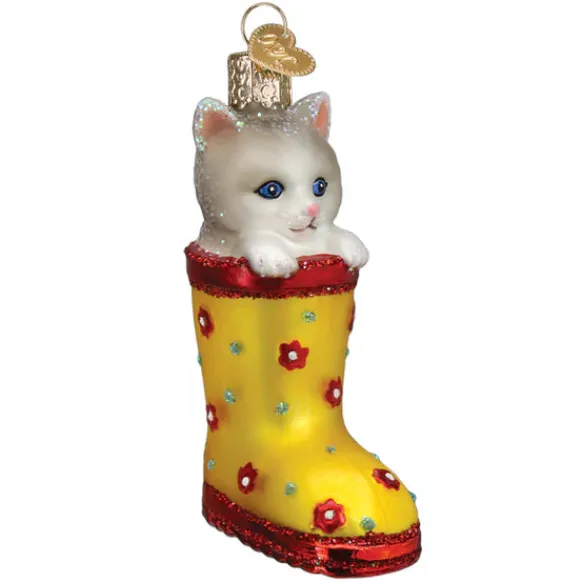 This Playful, Old World Christmas Glass Kitten In Rain Boot Ornament Is A Great Addition For Any Animal Lover. Commemorate The Year With Your Own Playful Kitten With This Beautiful Glass Ornament.
