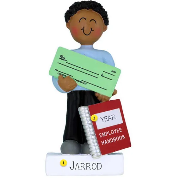 This Male Person Of Color Personalized Ornament Is A Great Keepsake To Remember Your First Day At A New Job! Great Gift To Celebrate A New Job Or First Job. Add A Name And Year To Make It Extra Special.