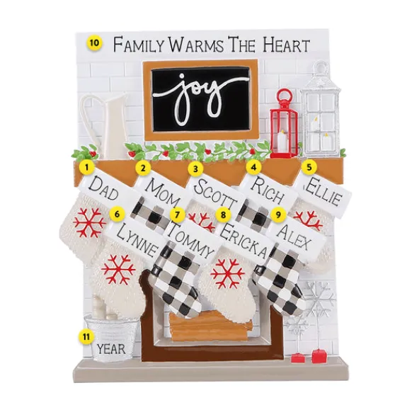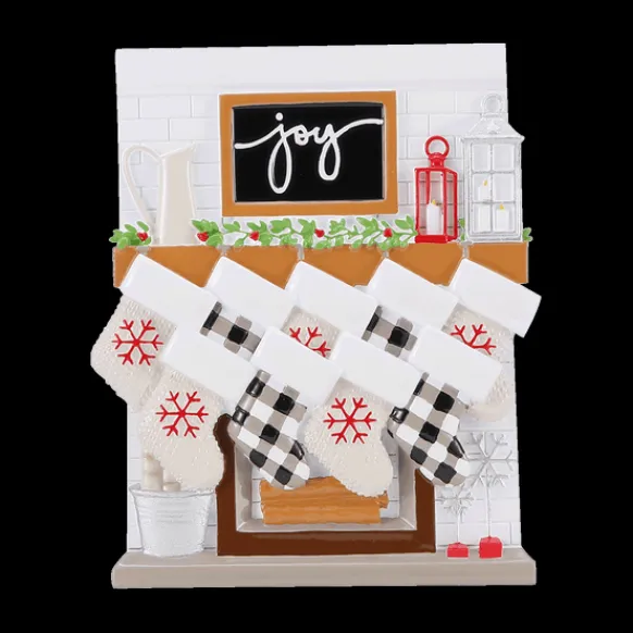 Add Some Festive Family Flare To Your Tree This Holiday Season With This One-Of-A-Kind Personalized Fireplace Mantel Family Of 9 Ornament! Perfect For A Big, Happy Family, The Ornament Comes With Up To Nine Names And Dates, So You Can Personalize It Just The Way You Like It!