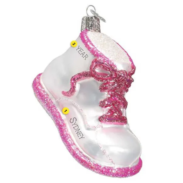 The Arrival Of A Baby Brings Many Wonderful Firsts: First Tooth, First Word, And, Of Course, First Step. The Pink Glitter Glass Baby Shoe Ornament Makes A Wonderful Keepsake To Commemorate Any Baby’s Firsts.