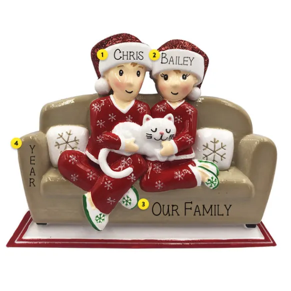 This Festive Pajama Couple With A Cat Ornament Is The Perfect Way To Include Your Fury Friend In Your Yearly Ornament. Have It Personalized Free To Make It Extra Special.