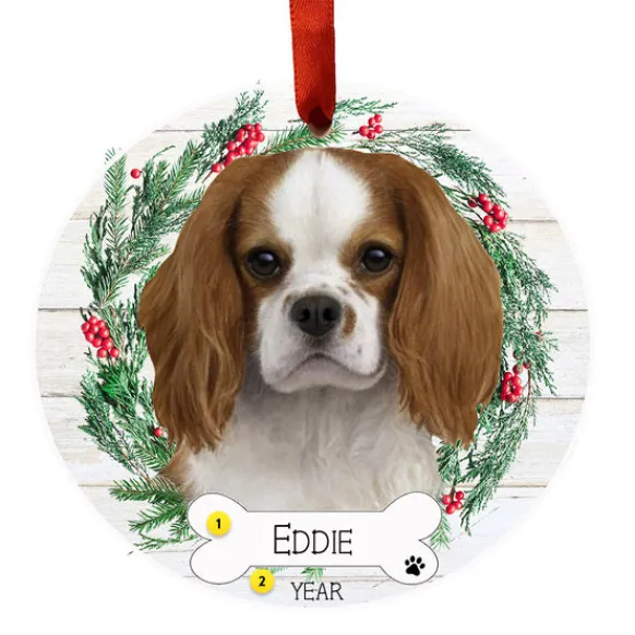 This Festive Personalized King Charles Cavalier Disc Ornament Is The Ideal Present For Any Dog Lover! Let Your Beloved Pup Join In On The Holiday Fun!
