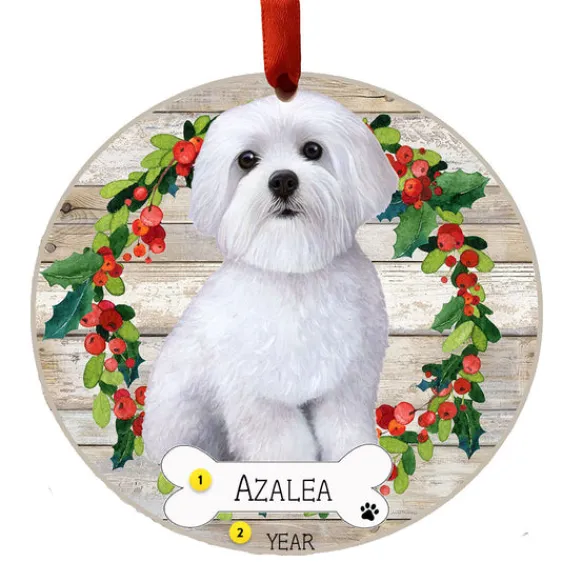 This Personalized Maltese Disc Ornament Is The Ideal Gift For Any Dog Lover! Let Your Beloved Pup Join In On The Holiday Fun!