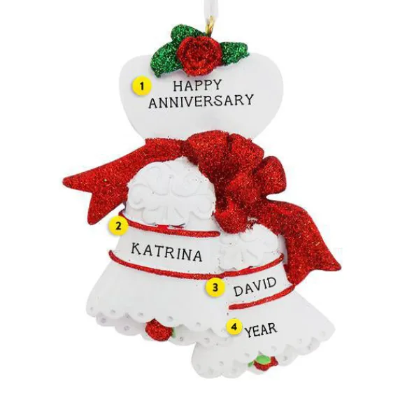 This White Wedding-Day Bells Ornament Has A Glistening Red Glitter Bow That Will Make Your Tree Sparkle And Shine.