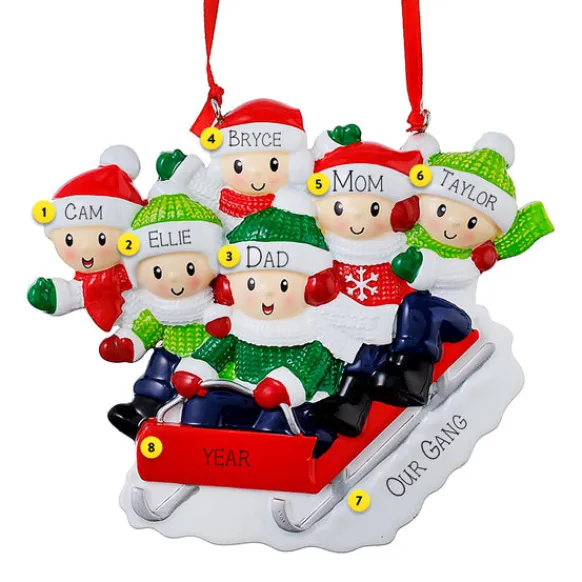 Make This Winter One To Remember With The Personalized Sledding Family Of 6 Ornament. Crafted With 6 Figures Atop A Sled, This Memento Is Perfect For The Family That Loves Wintertime Fun. This Special Trinket Will Add A Special Touch To Holiday Festivities.
