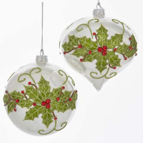 These Gorgeous Glass Bulbs Decorated With Holly Leaves And Jewels Make A Great Addition To Any Christmas Tree!