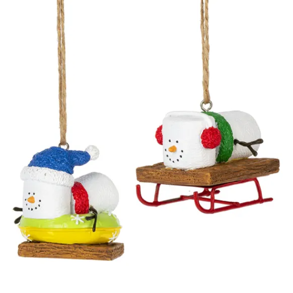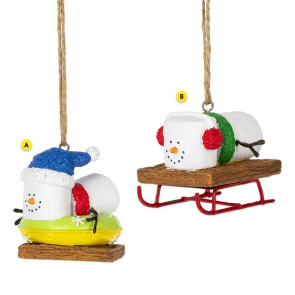 These Original S’Mores Ornaments Are Ready For Some Fun In The Snow. These Ornaments Features S’Mores Dressed In Their Winter Gear, With A Sled Or Tube.
