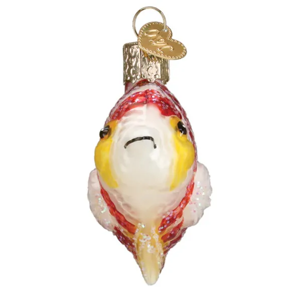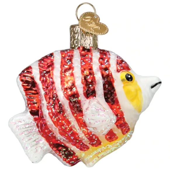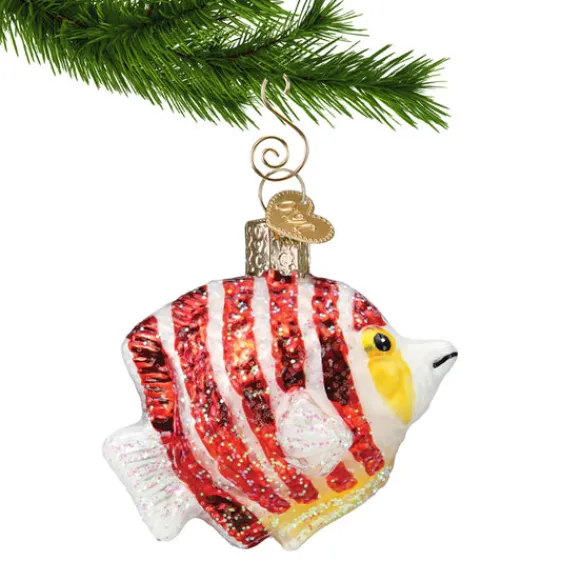 The Glass, Old World Christmas, Peppermint Angelfish Ornament Features Red And White Stripes. This Rare Fish Makes A Unique Addition To Your Christmas Tree.