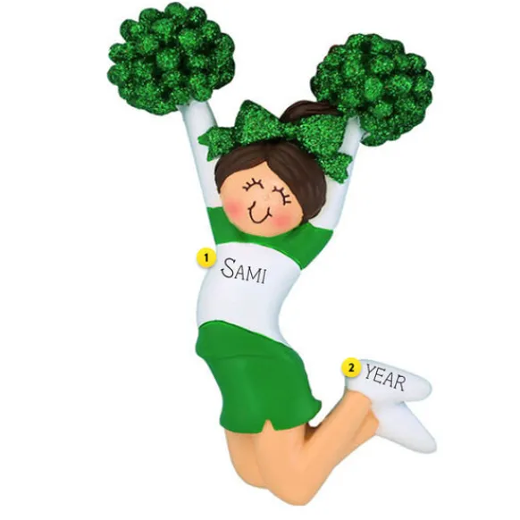Celebrate Your Star Cheerleader Or Commemorate Her Awesome Season This Christmas! This Cheerleader Ornament In A Green Uniform Will Make A Fantastic Gift, Especially When Personalized. Coaches And Teammates Will Surely Jump For Joy With This Adorable Keepsake As Well.