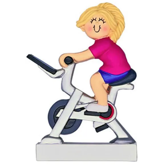 Online Ornament Central Personalized Exercise Bike Ornament – Female, Blonde Hair