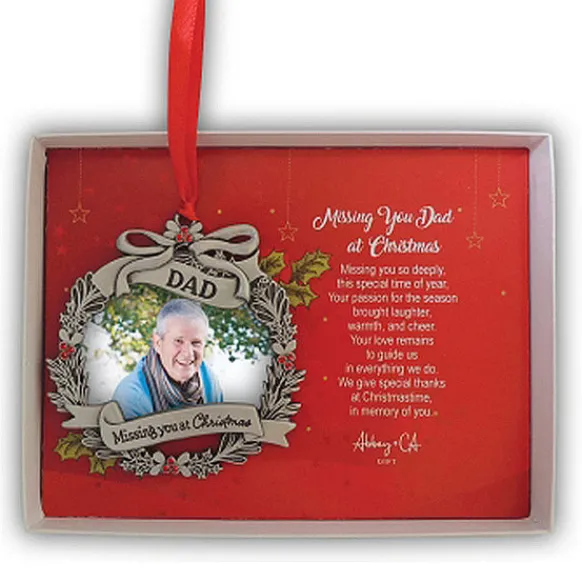 Give A Memorable Gift This Holiday Season With This Memorial Photo Frame Ornament For The Loss Of A Father, Complete With A Spot For Adding Your Loved One’s Photograph.