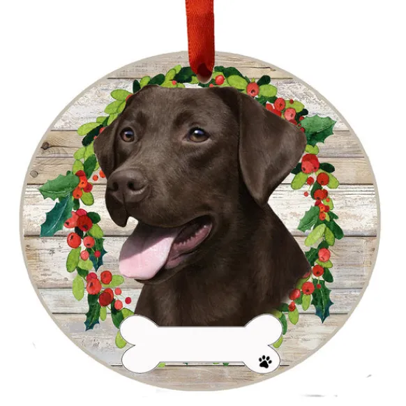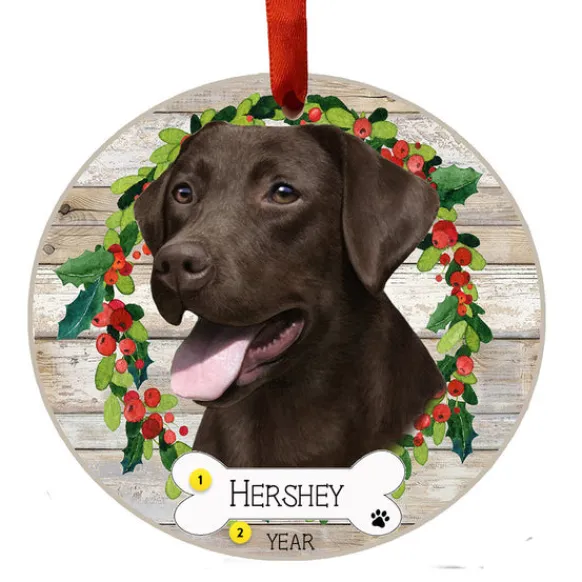 This Festive Personalized Chocolate Labrador Disc Ornament Is The Ideal Gift For Any Dog Lover! Let Your Beloved Pup Join In On The Holiday Fun!