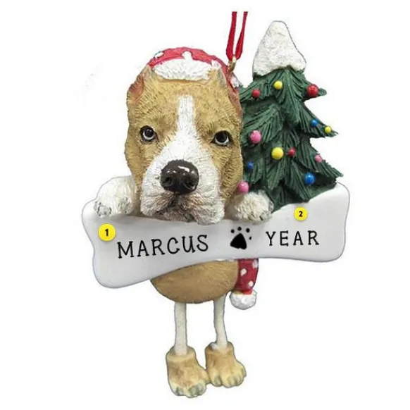 Dogs Are Important Members Of Our Family. Return Their Unconditional Love And Honor Them By Hanging This Cute Dangling-Leg Brindle Pit Bull Ornament On The Family Tree.