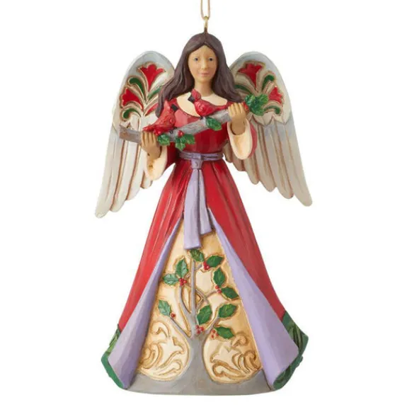 This 3.5″ Christmas Angel Ornament Holds A Twig Of Holly Between Her Delicate Hands. On The Branch, Two Cardinals Tweet Together In Inspired Harmony. Her Wings And Gown Feature Poinsettia Petals And A Bush Of Holly In Enchanting Color.