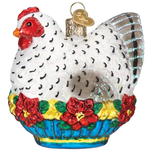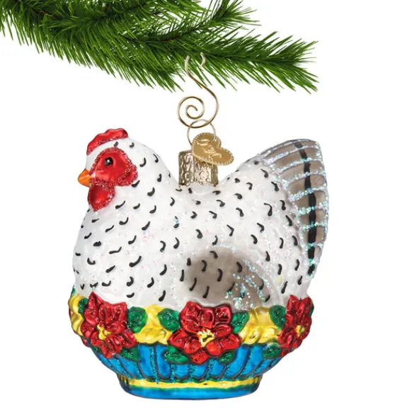 White With Black Specs, Glass, French Hen Ornament By Old World Christmas.