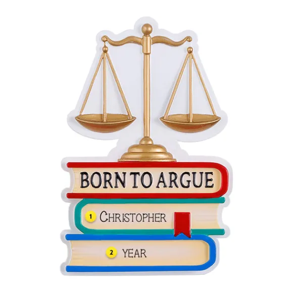 Bring Down The Law This Holiday Season With Our Personalized Lawyer Born To Argue Ornament. Perfect For The Lawyer In Your Life. Also A Great Joke For Someone Who Loves To Argue.