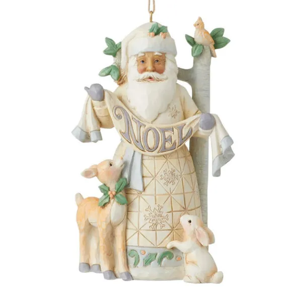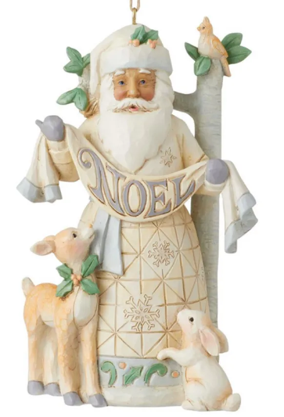 Handcrafted In Incredible Detail, This White Woodland Santa Ornament Beautifully Reflects Noel The Heart Of Christmas. This Is An Elegant White Woodland Design From The Artistry Of Jim Shore.